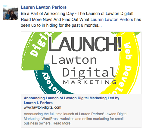 The Jollity Marketing Facebook page reached 100 likes in the company’s first 7 days. If you have 10,000 likes already, 100 is a shoulder shrug. If you’re like us, and you were at 0, you pat yourself on the back. The images below are from Jollity’s original business name back in the day, Lawton Digital. Here are 7 things I did to collect my first 100:
